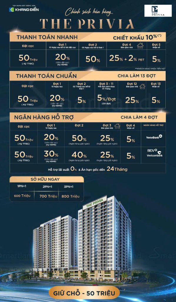 Chính sách thanh toán khi mua căn hộ The Privia