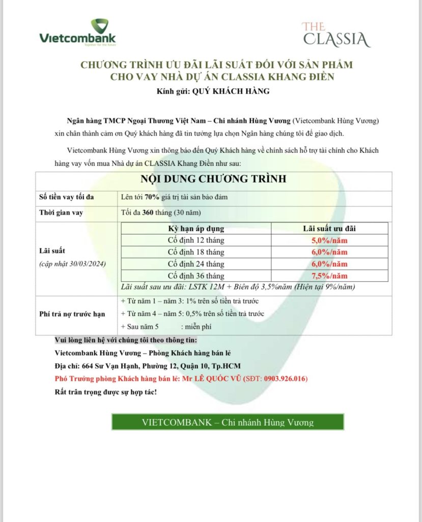 Vietcombank: ưu đãi lãi suất mua nhà The Classia