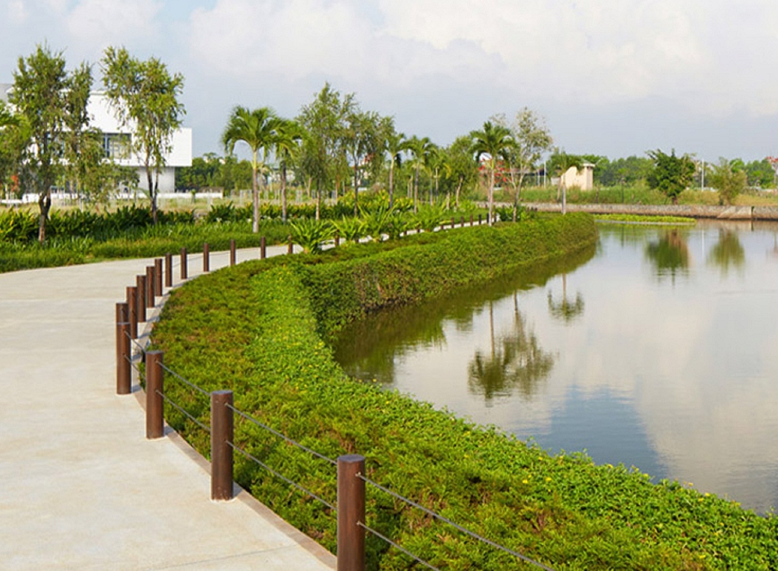 Công viên sinh thái ven bờ sông với không khí thoáng đãng và trong lành
