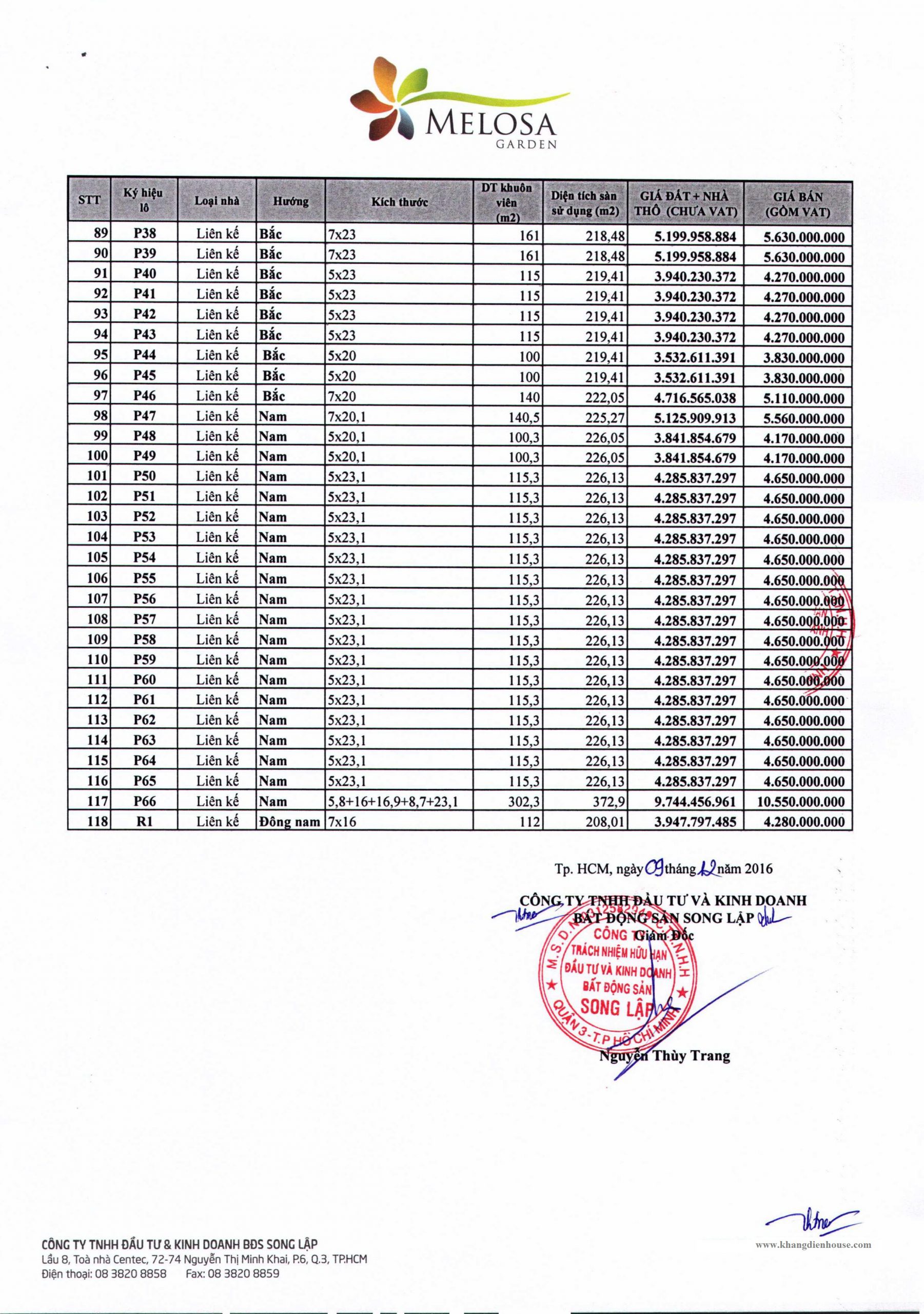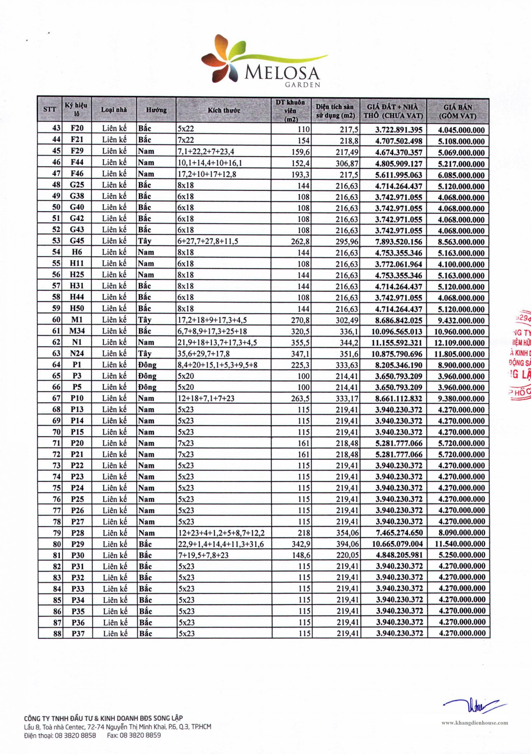 THÔNG TIN CHI TIẾT MELOSA GARDEN
